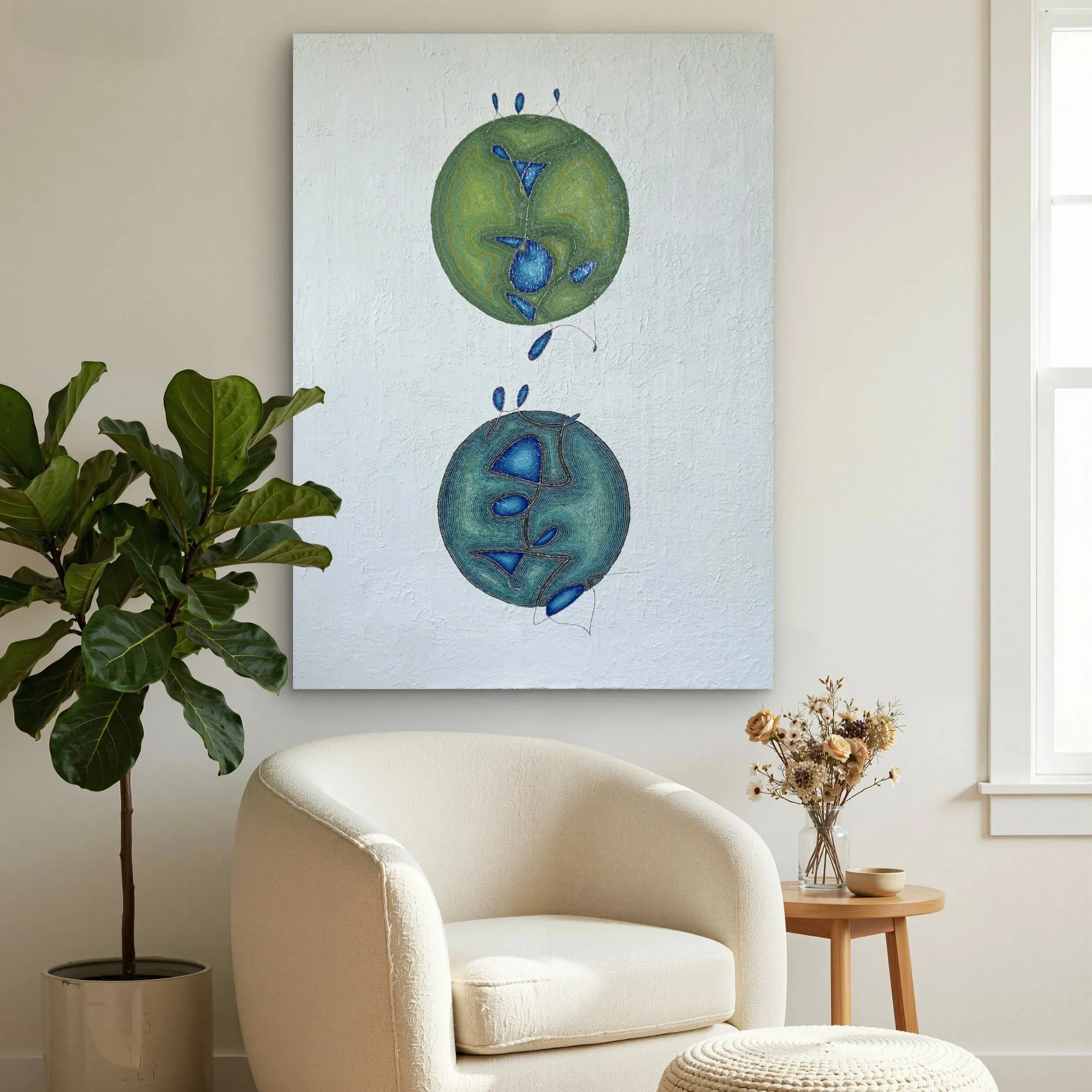 These paintings are created through an intuitive, meditative process meant to be experienced rather than interpreted. Light, texture, and movement shift with time and perspective, inviting a personal and evolving connection.